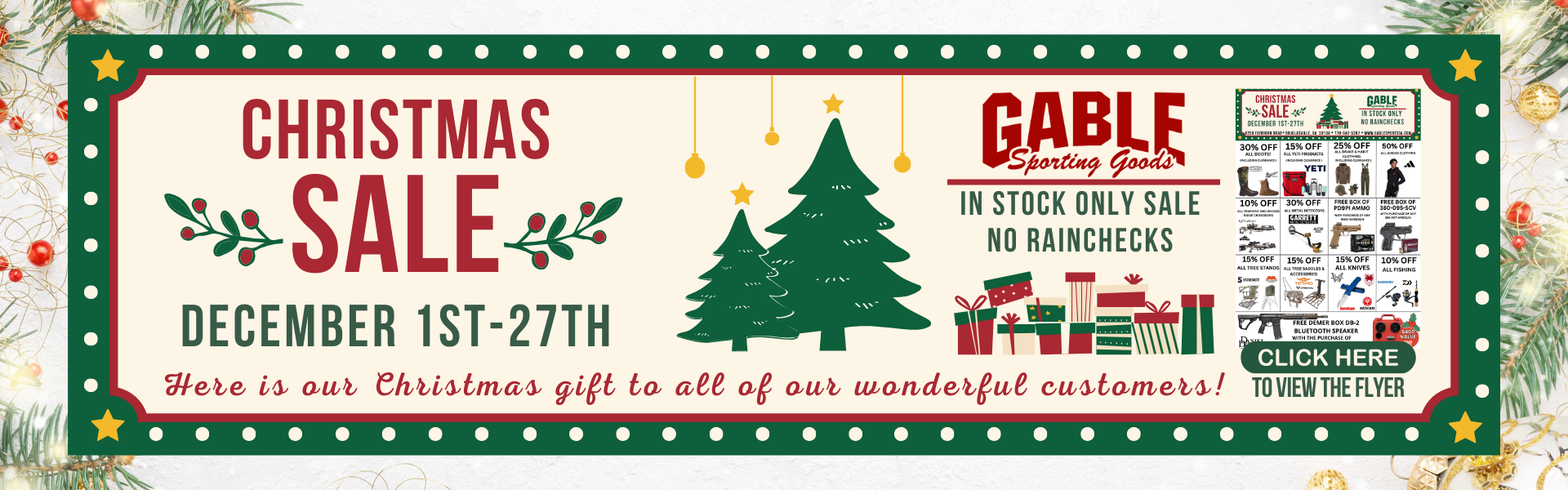 Since 1964, Gable Sporting Goods has been serving the Douglasville and Greater Atlanta Metropolitan area’s hunting, fishing and sporting needs from all the top brands you love. Our team sports department serves sporting clubs and schools through out the state of Georgia and surrounding areas. When price, service and selection are important to you as a sporting good shopper, Gable Sporting Goods is the only choice. We stock a full range of Firearms, Team Sports Gear, Hunting Apparel & Accessories and Fishing Gear.