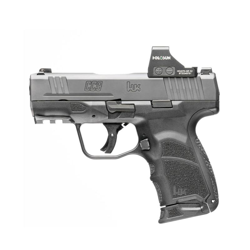 The HK CC9 9 mm Optics Equipped VTX CCW Open is a compact striker-fired handgun designed with concealed-carry practicality and modern sighting enhancements in mind. Factory equipped with a VTX optics solution on its optics-ready slide, it pairs a low-profile red-dot sight for quicker target acquisition and a refined sight picture straight from the case. The compact frame offers ergonomic handling and intuitive controls for comfortable everyday use, while the accessory rail allows for mission lights or other tactical attachments to expand versatility. This configuration includes one 12-round and one 10-round magazine, providing flexible capacity options where permitted. Combining precision engineering with optics integration and carry-oriented features, the CC9 VTX CCW Open balances concealability, practical performance, and modern defensive capability.