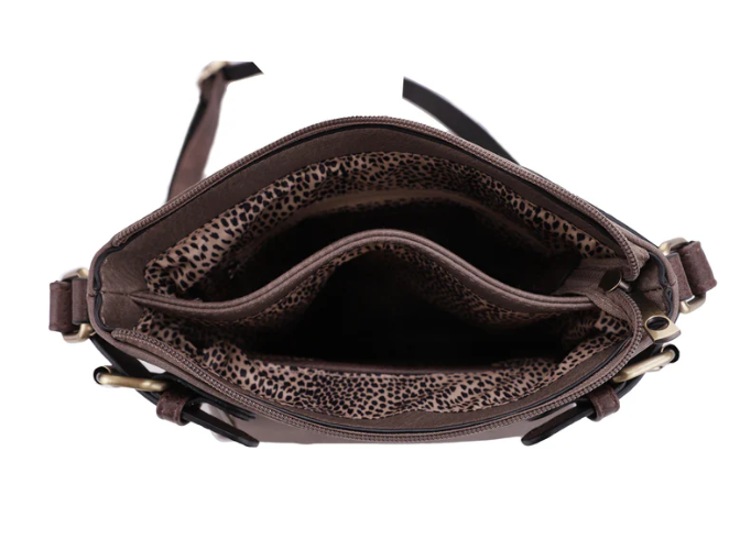 The Hannah Concealed Carry Lock and Key Crossbody is a petite yet functional bag, perfect for those seeking both style and practicality in a compact design. Made with attention to detail, this crossbody features antique brass hardware and a buckle detail design that enhances its timeless look. The adjustable shoulder strap ensures comfort and a customizable fit, making it ideal for daily use.
