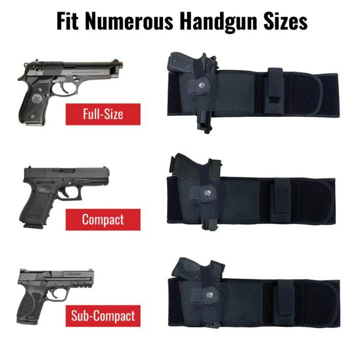 - One size fits all holster is compatible with the full range of full-size to sub-compact guns and revolvers