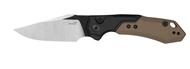 - Black-anodized aluminum and earth brown G10 combo handle; includes finger choil for extra grip and bronze-anodized titanium tube spacer