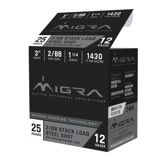Migra Staxd Load is the answer to multiple hunting situations. The engineered formula delivers uniform patterns and consistent bulk densities that deliver increased kill-ratios with absolutely no fillers. Combined with our patent-pending technology and carefully selected shot combinations Migra shells are deadly and reliable.