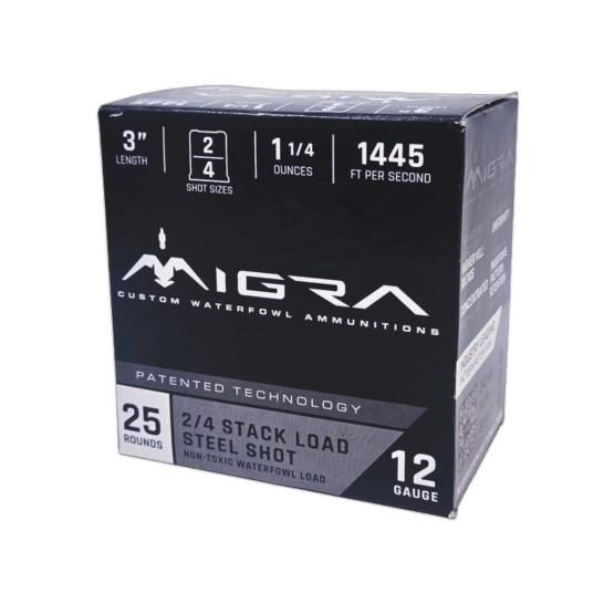 Migra Steel Waterfowl Staxd Load 12 Gauge 3 " # 2 & # 4, 1.25oz, 25rds - M12ss24