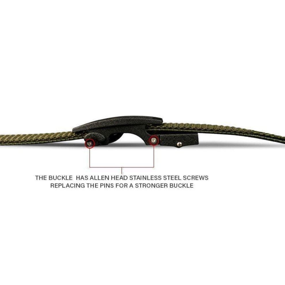 - The buckle has Allen head stainless steel screws replacing the pins for a stronger buckle