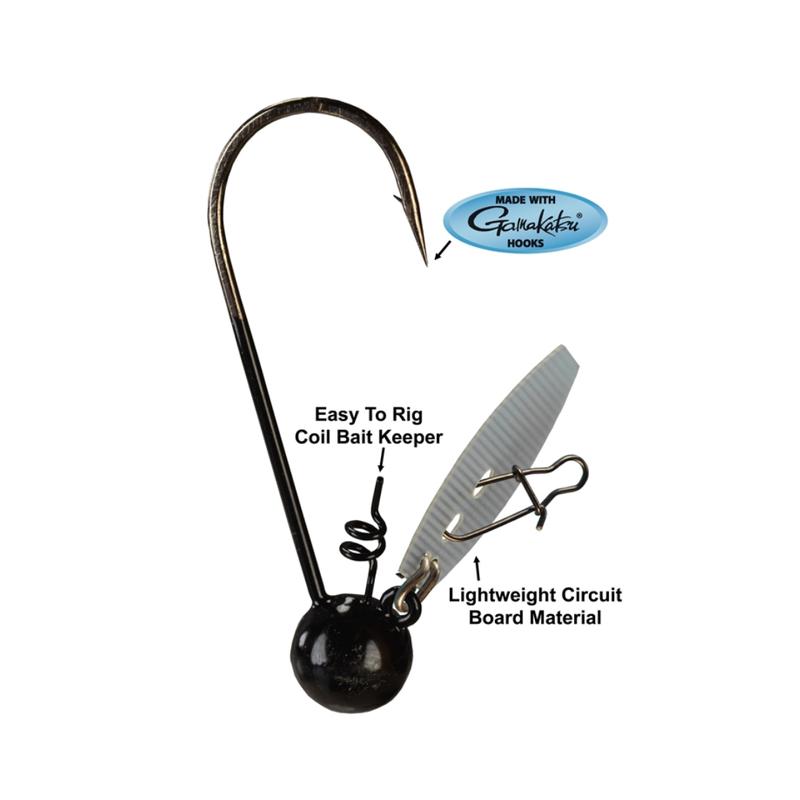 The Picasso Shakey Vibe is a design collaboration with professional Lake Guntersville guide Lonnie Cochran. The Shakey Vibe offers the unique combination of a traditional shakey head with the added advantage of fish attracting vibration. The translucent blade is constructed from super lightweight circuit board material that starts moving immediately and is virtually invisible to the fish. Equipped with an easy-to-rig coil bait keeper, premium 5/0 Gamakatsu hook on 3/16, 1/4, 3/8, and Mag 8/0 Gamakatsu hook on 1/2, 5/8, and 3/4 sizes.
