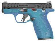 Designed for fast sight acquisition, the pistol uses a black U-notch rear sight paired with a bright dot front sight featuring a tritium insert. The stainless steel slide is finished with Armornite to enhance wear resistance and long-term reliability. The Typhoon Shimmer frame provides a secure grip surface while giving the pistol a unique visual character.