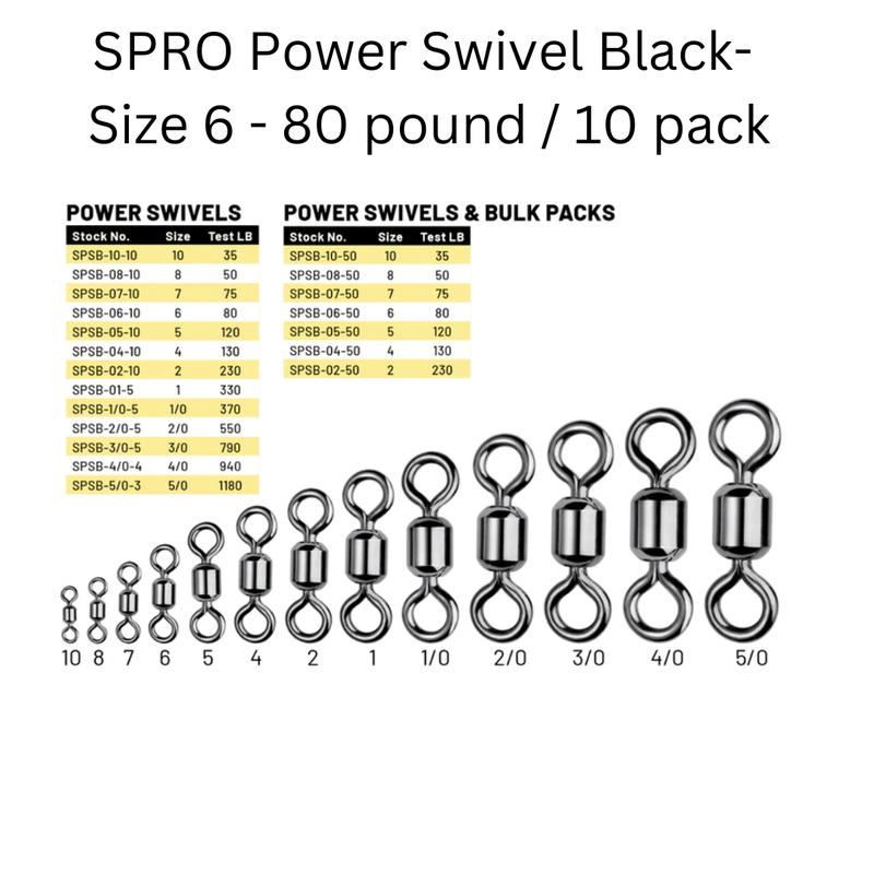 Spro Power Swivel Black-- Size 8 - 50 Pound/10 Pack SPSB08 SPRO Power Swivel Black--Size 8 - 50 pound / 10 pack Price:$3.99 On Sale:Yes Stock: 10+ Qty: Add to Cart